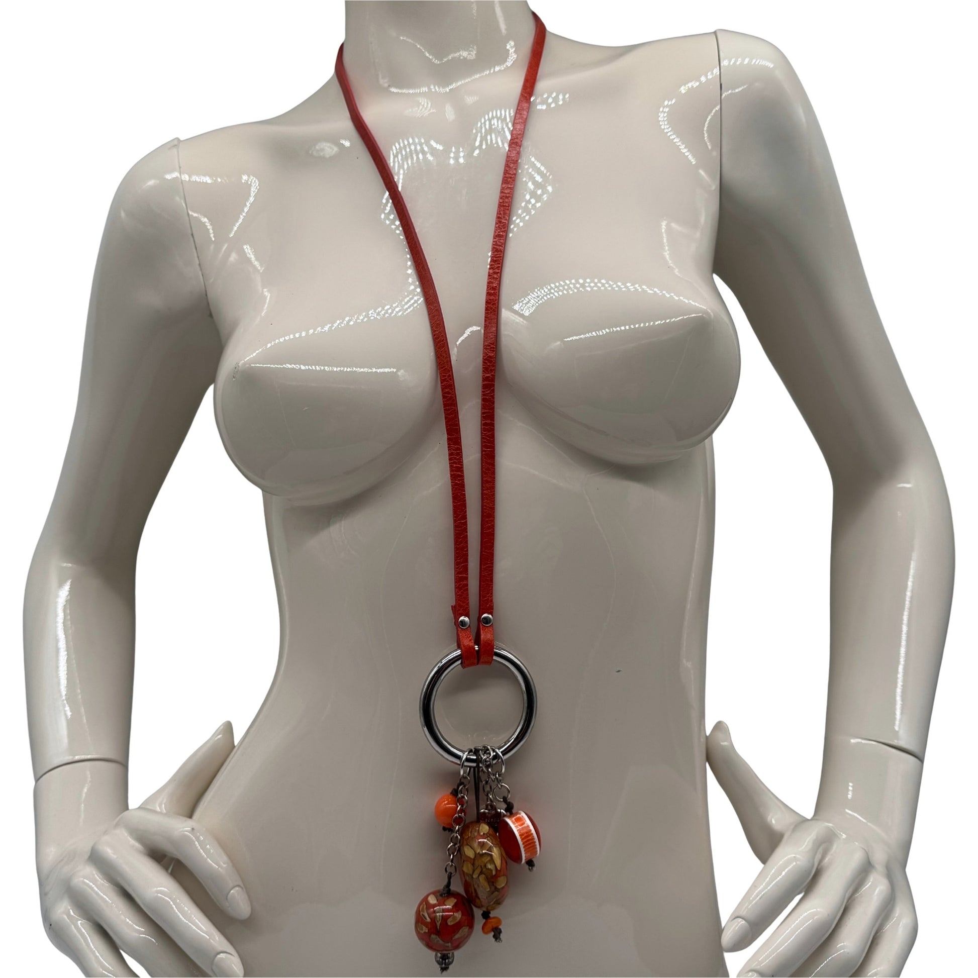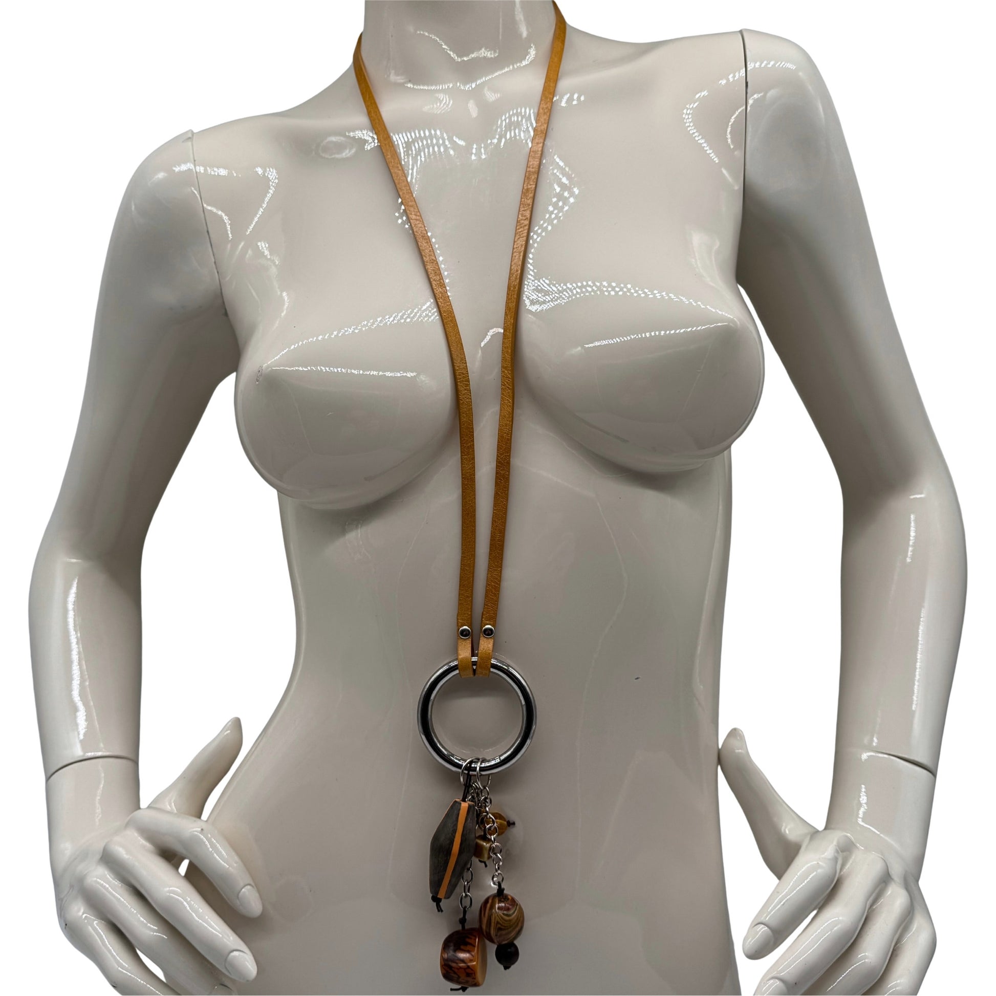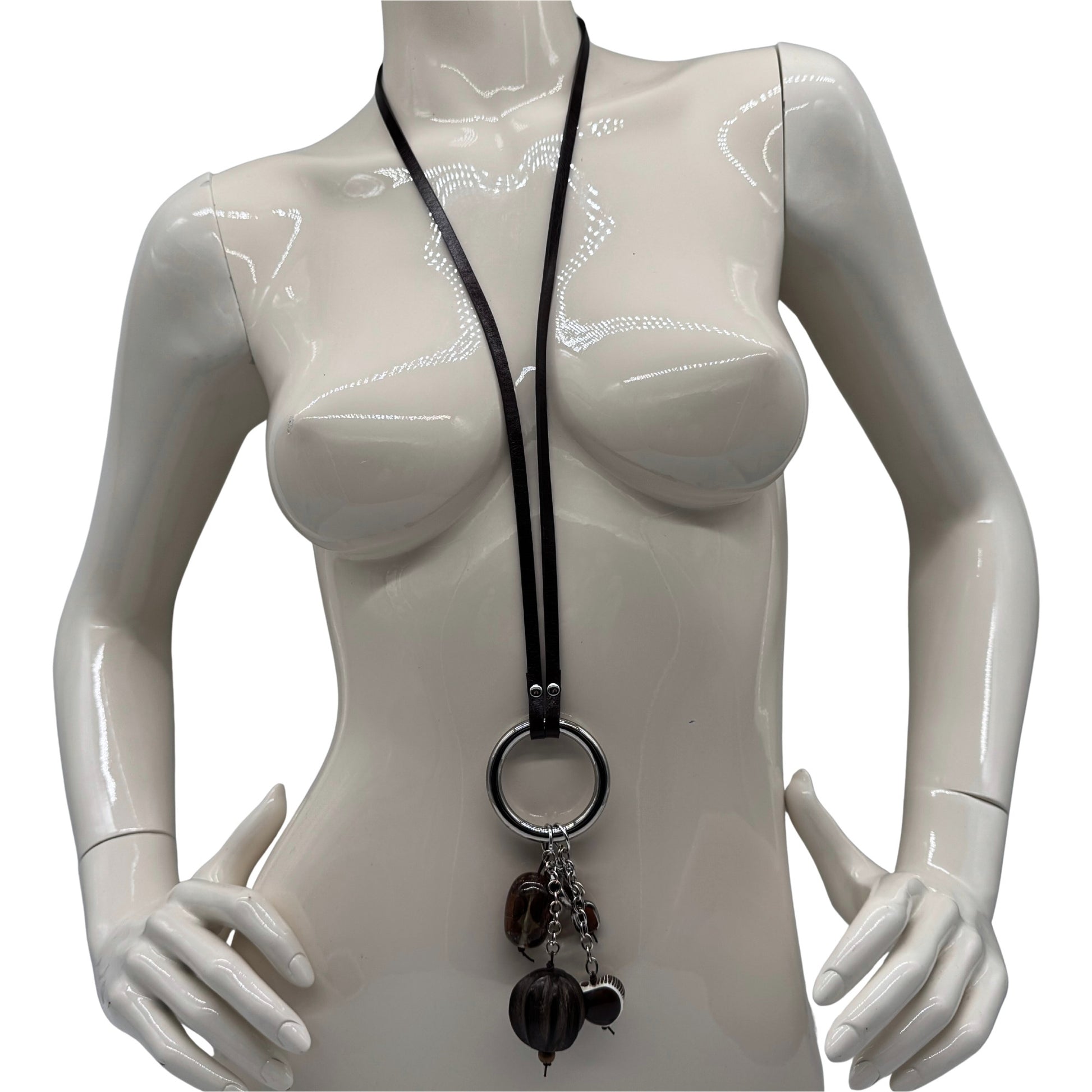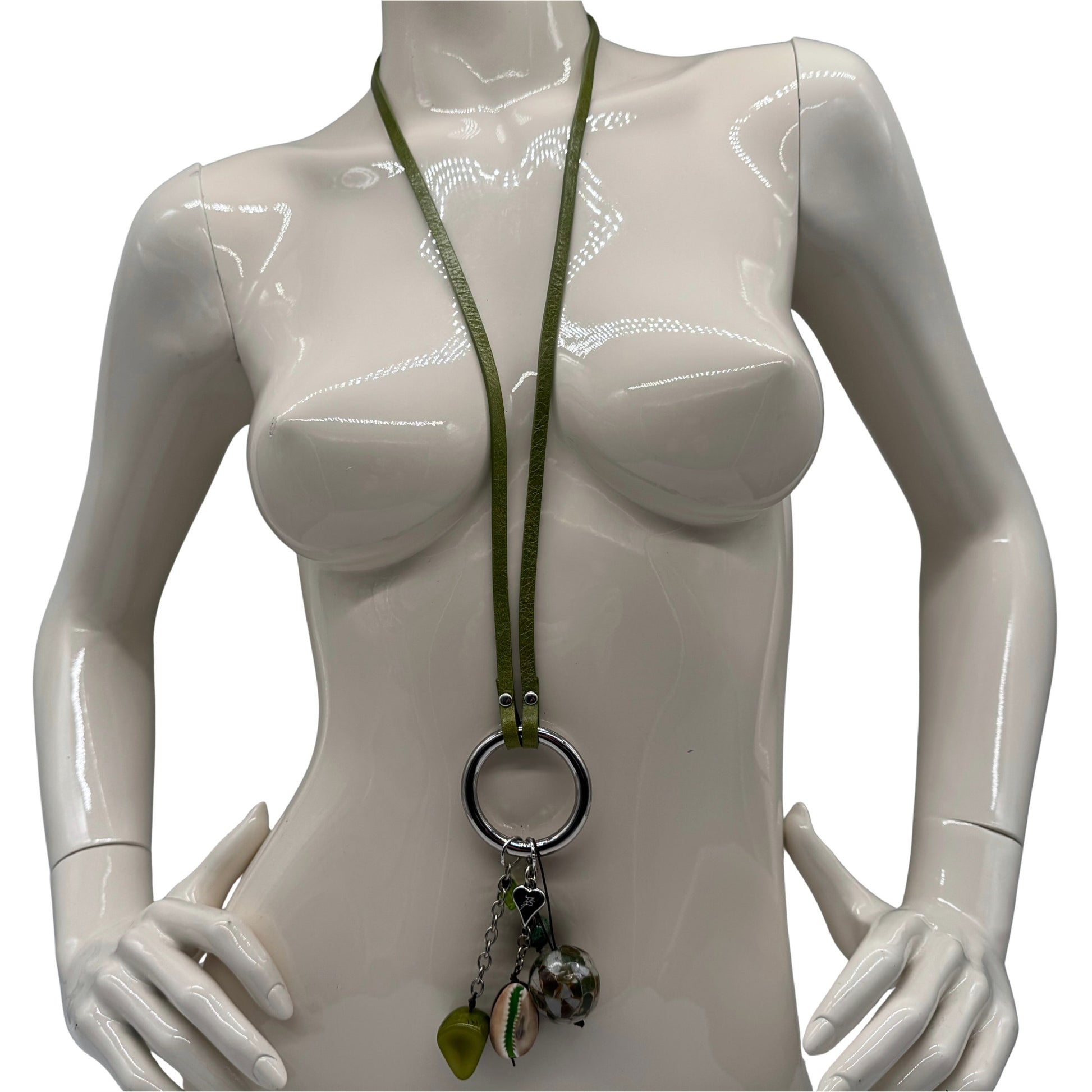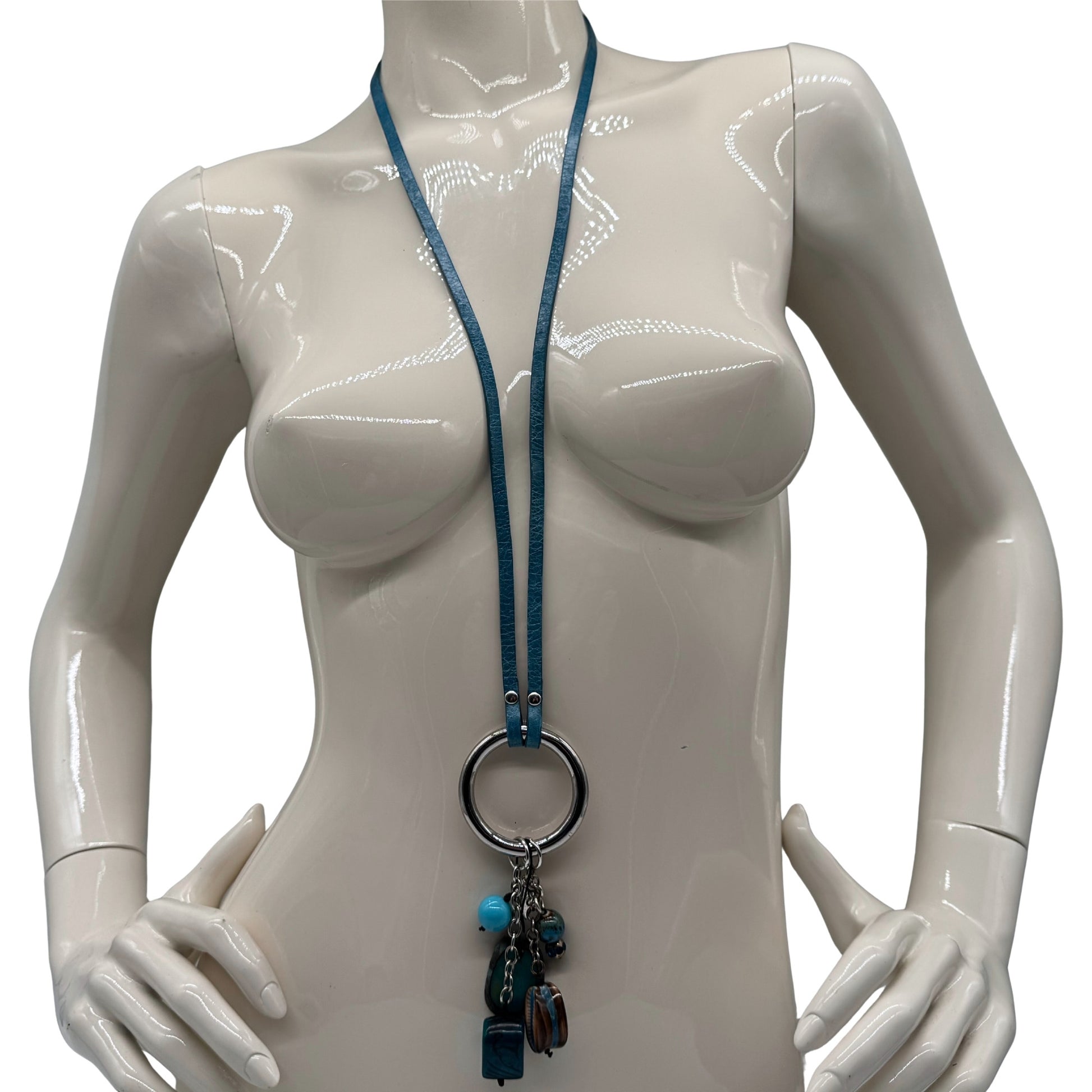 Unsere handgefertigte Lederkette überzeugt durch ihren modernen Look und den markanten Anhänger-Mix. Das glatte Lederband führt zu einem runden Metallring, an dem bewegliche Schmuckelemente befestigt sind – darunter Muschel, farbige Perlen und strukturierte Steine. Die Materialien sorgen für Tiefe im Design und bringen dezente, lebendige Farbakzente ins Spiel. Jede Kette hat ihren eigenen Charakter, da Anhängerform und -auswahl variieren. Ein stilvolles Accessoire, das sowohl schlicht als auch auffällig kombiniert werden kann.