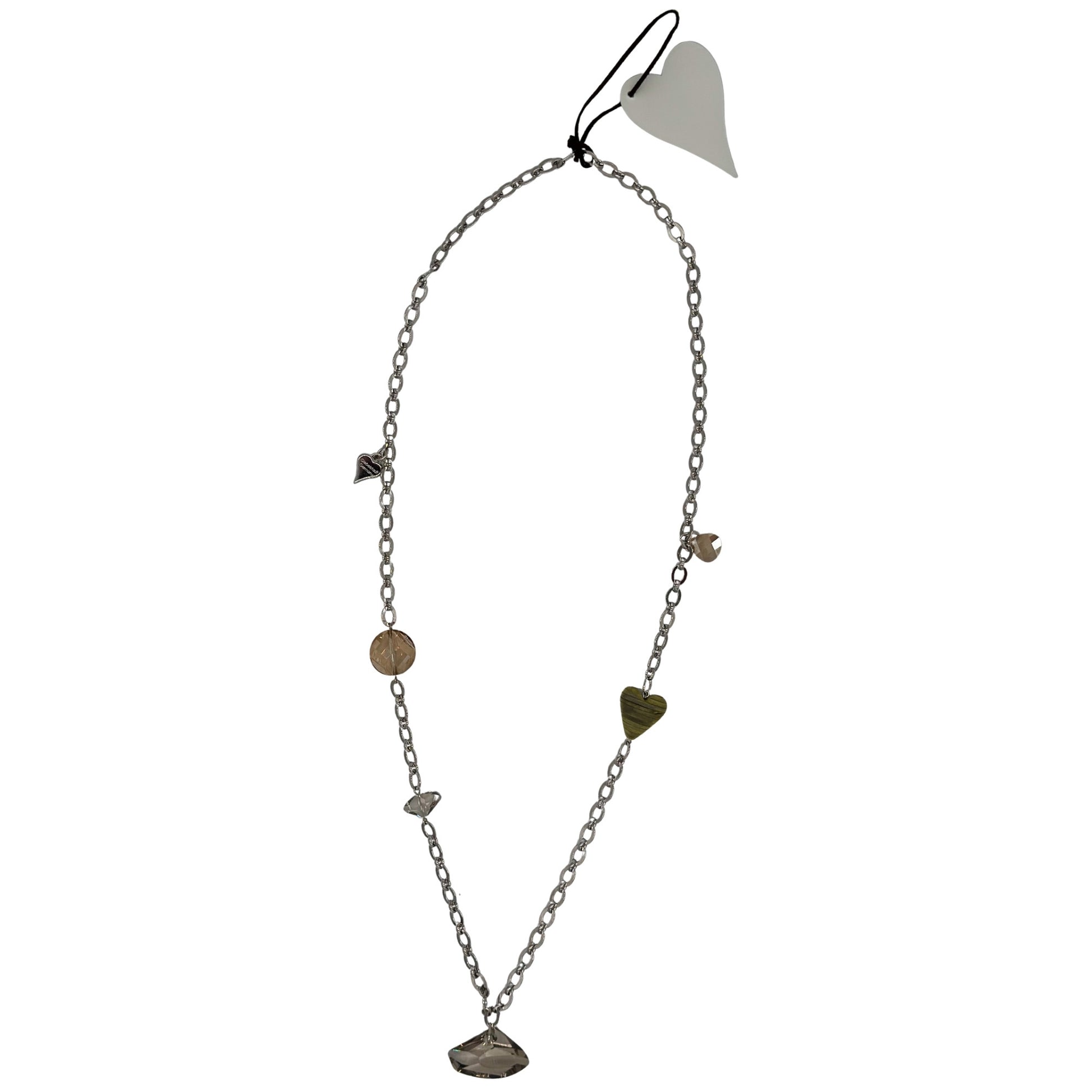 Handgefertigte Metallkette aus hochwertigen, natürlichen und edlen Materialien. Funkelnde Swarovski-Glassteine kombiniert mit einem feinen Muschelherz machen dieses Accessoire zu einem eleganten Highlight für jeden Look.